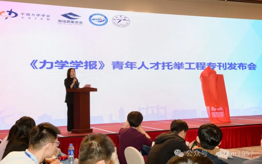 隨后,隆重舉辦了《力學(xué)學(xué)報》青年人才托舉工程??l(fā)布會。發(fā)布會由湯亞南常務(wù)副秘書長主持。她與青年人才們分享了《力學(xué)學(xué)報》陸夕云主編為??餍蛑刑岬降膶τ谇嗄耆瞬懦砷L的思考,熱切希望青托委員會能帶動國內(nèi)更多的青年學(xué)者關(guān)注并探索力學(xué)的前沿科學(xué)問題和國家重大需求中的瓶頸問題, 不斷推動我國力學(xué)事業(yè)的蓬勃發(fā)展。